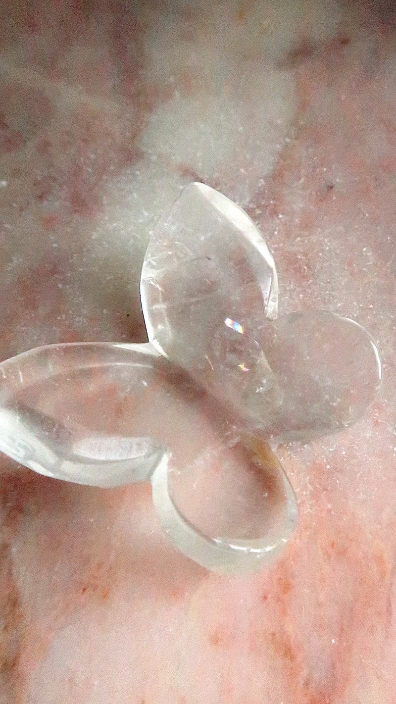 A beautiful carved butterfly made from Clear Quartz. The centre of the butterfly sits flat so the wings are elevated slightly.