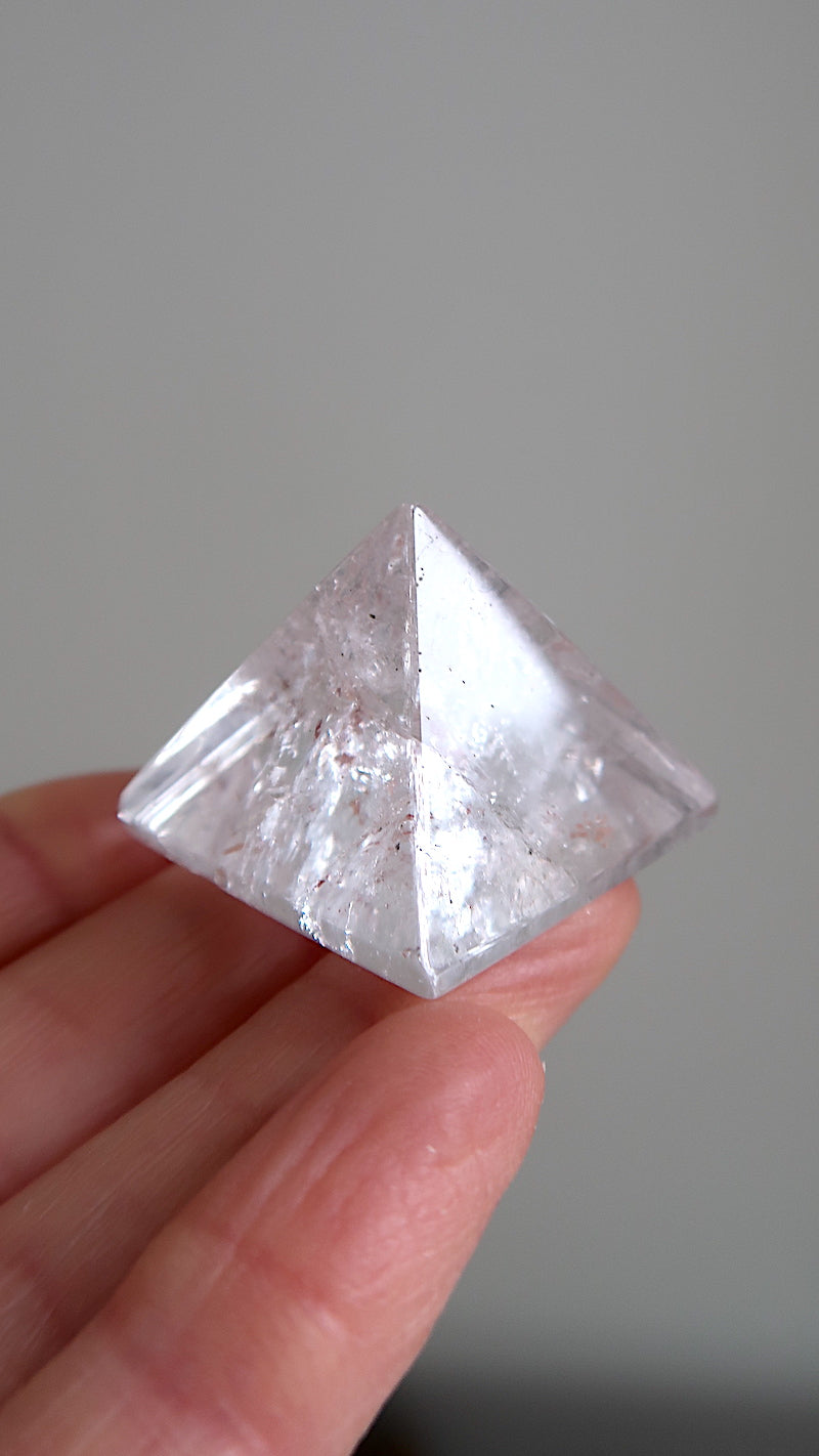 A stunning Clear Quartz pyramid with amazing clarity and filled with rainbows.