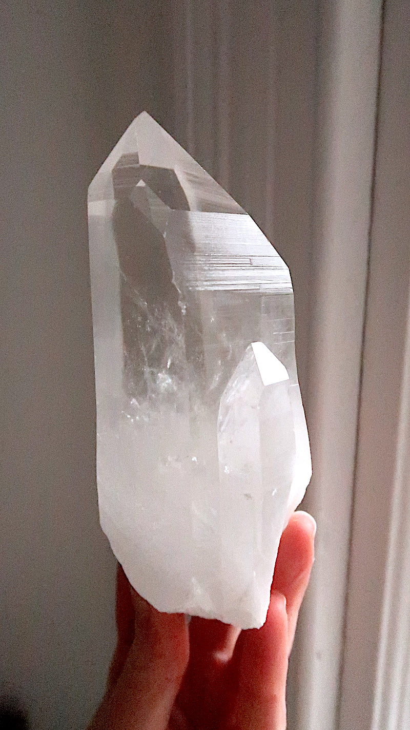A stunning premium quality Clear Lemurian Quartz point. Premium quality.