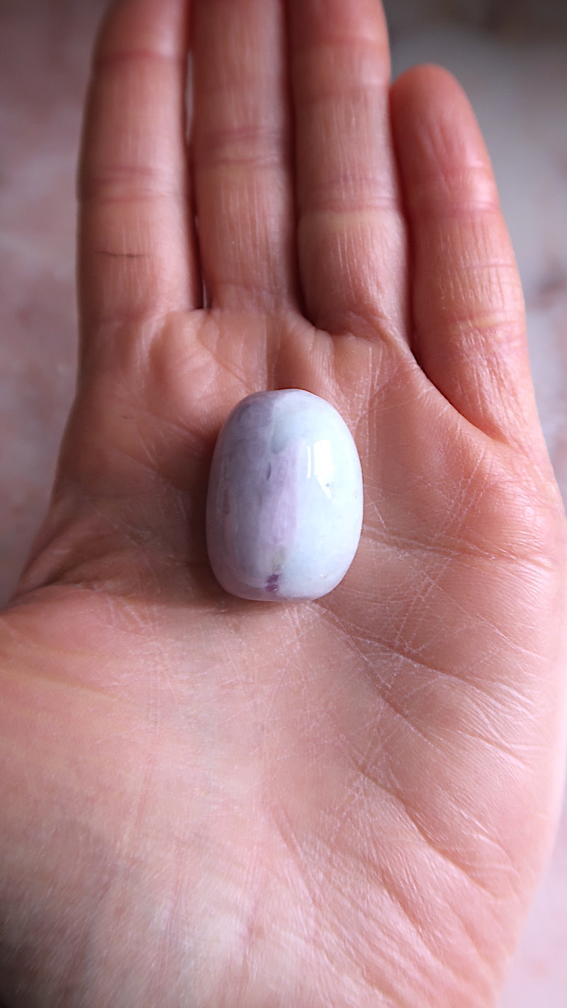 A beautiful pink Kunzite tumble with some pale blue Beryl